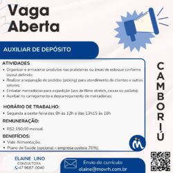 Casa do MDF terceirização e ServiçosEfetivo**VAGA PARA LOJA DO CENTRO** Possuir experiência ..CamboriúSanta Catarina, Brasil 4 fev 2026 4 fev 2026 -