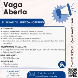 MOV Soluções e Desenvolvimento EmpresarialEfetivoDescrição Empresa é uma indústria e busca prof..No Categories CamboriúSanta Catarina, Brasil 3 fev 2026 B - R$ 801,00 - 1.000,00 -