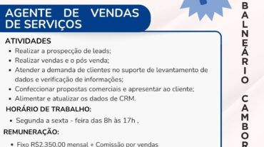 Nosso cliente há mais de duas décadas está atuando no Comércio Exterior, e busca profissional para atuar como Agente de Vendas de Serviços.