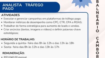 - Conhecimento técnico em tráfego pago e plataformas de anúncios;
