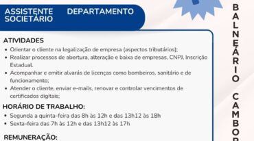 - Ensino Superior Cursando ou formado em Ciência Contábeis, Técnico Contábil ou Direito e áreas afins.