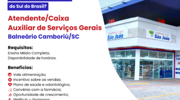 Para o cargo de Atendente, você será responsável por acolher e oferecer o melhor atendimento, de forma humanizada, aos nossos clientes. Superar as suas necessidades ofertando a solução completa com aquisição de produtos e serviços farmacêuticos, além das demais categorias, como, dermocosméticos, conveniência, perfumaria, nutrição e bazar. Zelar pela organização, limpeza e cumprimento de normas sanitárias, a fim de propiciar a melhor experiência aos clientes.