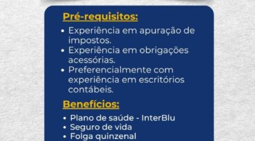 VAGA EM ABERTO PARA AUXILIAR FISCAL CONTABIL